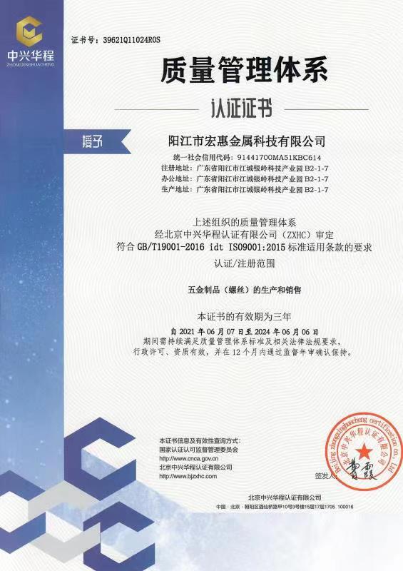 廣東宏惠金屬公司是家20多年一直專注鉆尾螺絲開發(fā)與生產(chǎn)的企業(yè),是國內(nèi)較早做鉆尾的廠家之一,同時也是國內(nèi)專業(yè)開發(fā)生產(chǎn)鉆尾螺絲的企業(yè)之一。 我司地址為于廣東省陽江市江銀嶺科技園距沈海高速白沙出口不到2公里,距陽江高鐵站也只有十余公里交通便利。 公司占地120畝,擁有超500臺套專業(yè)設(shè)計 生產(chǎn) 檢測設(shè)備。一個超200人的專業(yè)團隊,能夠嚴格按照ISO9001質(zhì)量體系要求生產(chǎn)符合GB DIN AS3566 ANSI JIS BS等標(biāo)準的產(chǎn)品,生產(chǎn)銷售各種高品質(zhì)緊固件系列產(chǎn)品,為中高端客戶提供優(yōu)質(zhì)服務(wù)。也可按照客戶要求設(shè)計生產(chǎn)各種鉆尾,年產(chǎn)高品質(zhì)碳鋼 不銹鋼鉆尾螺絲2萬余噸.在各大客戶的鼎力支持下產(chǎn)品暢銷全國,并遠銷亞 非 拉 歐等地,在這20多年發(fā)展的道路上我司堅持“以質(zhì)量求生存,以信譽求發(fā)展”的精神理念不斷完善公司體系。
